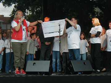 Dem Musikprojekt der Wilhelm-Busch-Schule kommt außerdem der Erlös des Butjerbrunnenfestes zugute. Noch konnte Bezirksbürgermeisterin Angelika Walther dem Rektor der Wilhelm-Busch-Schule, Michael Strümpel, nur einen Blankoscheck zeigen, der aber am 7. Oktober 2004 ausgefüllt überreicht werden soll.