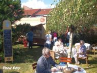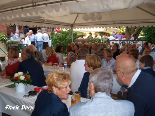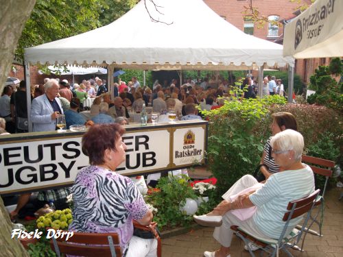 Das Ricklinger Deichfest funktioniert an vielen Orten: wie in der Anfangszeit auf dem Parkplatz am Deich, längs des Horst-Schweimler-Weges, auf der Wiese entlang des Deiches, wegen Hochwassers auch mal auf dem August-Holweg-Platz, und nun auf dem Hof der DRC-Clubgaststätte in Sichtweite des Deiches an der Beekestraße. Zwar war der Platz und das Zelt insgesamt kleiner als in den Vorjahren, dies wurde aber mit viel Stimmung und dem Angebot in verschiedenen Bereichen mehr als Wett gemacht. Besonders schön fanden viele den ruhigeren Kaffeebereich im Vorgarten der Gaststätte mit leckeren Kaffeespezialitäten und Flammekuchen.
