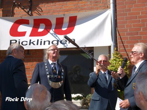 Hartmut Herbst hielt eine kurze Dankesrede, in der er erzählte, dass Klaus Dieter Scholz ihm bei der letzten ARV-Jahreshauptversammlung mitgeteilt hatte, dass er der 17. Ricklinger Deichgraf werden sollte.