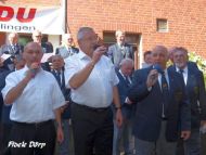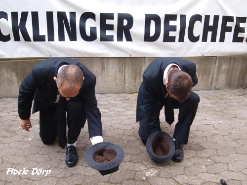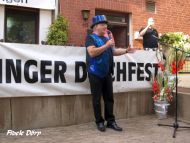 Hartmut Herbst: „Ich habe mir erst Bedenkzeit erbeten und eine Nacht darüber geschlafen. Zum einem dachte ich, erst mal bist Du kein Typ, der gerne im Mittelpunkt steht, und zum andern, Du hast sowieso so wenig Zeit und jetzt noch Deichgraf. Ich habe dann auf die Internetseite des Deichgrafen-Collegiums geguckt und festgestellt, dass es – man sagt neudeutsch – ein Netzwerk kreativer, engagierter Mitbürger, Mitbürgerinnen ist, die in Ricklingen was bewegen. Und dazu zugehören, dachte ich, kann nicht verkehrt sein und ist sicherlich auch fruchtbar für meinen Job. Ich habe also freudig zugesagt und stehe hier in Amt und Würden und gehe noch nicht am Stock (lacht und zeigt den Deichgrafenstab – Zwischenruf: „Das kommt noch!“). Ich möchte mich ganz herzlich bei der Jury bedanken, die mich gewählt hat und bei denjenigen, die mich vorgeschlagen haben, und wünsche uns allen ein schönes Deichfest. Dankeschön!“