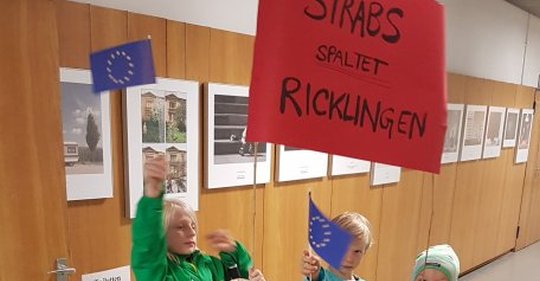 Protest gegen die Strabs-Beitragspflicht des Stichweges in der Gredelfeldtstraße vor der Bezirksratssitzung am 16.05.2019