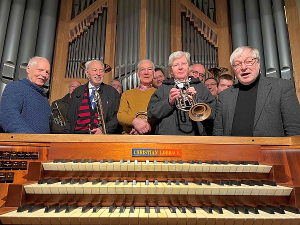 Der Posaunenchor St. Thomas musiziert unter der Leitung von Ute Salzer zusammen mit Winfried Dahn an der Lobback-Orgel weihnachtliche Musik.