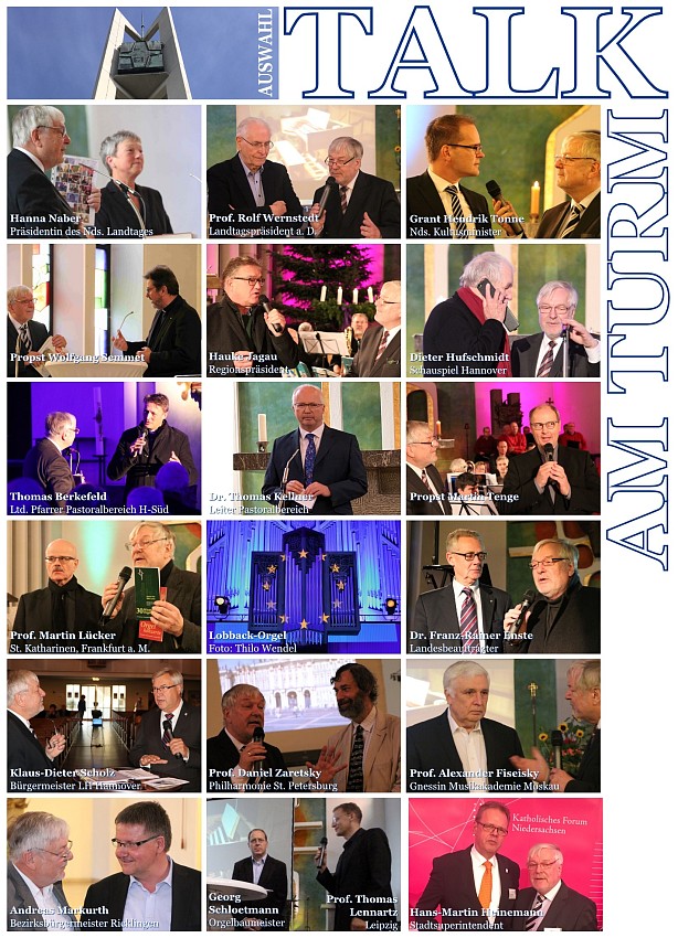 Der Talk am Turm zu Beginn des Konzertes ist eine Gesprächsrunde, in der Persönlichkeiten aus dem öffentlichen Leben eingeladen werden, die mit der Reihe „Musik in St. Augustinus“ in der Vergangenheit oder in der Zukunft verbunden sind. Vor dem Chorkonzert wird Winfried Dahn, Leiter der Konzertreihe, mit Bischof Hans-Jörg Voigt D.D. im „Talk am Turm“ einen Dialog führen. Im Mittelpunkt steht das berühmte Wort des Hl. Augustinus: „Wer singt, betet doppelt!“ – ein inspirierender Ausgangspunkt für eine Diskussion über die Resonanzfähigkeit von Musik in Zeiten gesellschaftlichen Wandels.